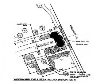 The prestigious Palmer Woods neighborhood in Detroit wants to reduce cut through traffic by closing some of their street connections with Woodward and 7 Mile Road. The Hamilton-Anderson architects designed some road closures for Strathcona, Balmoral, and Lincolnshire.